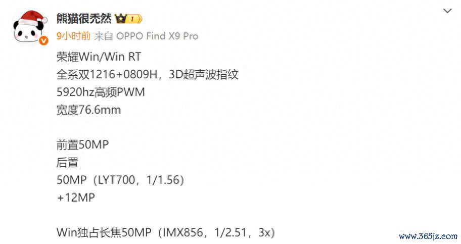 互异点在于长焦镜头,荣耀WIN独占了一颗5000万像素的IMX856长焦传感器,维持3倍光学变焦,而WIN RT则配备了一颗1200万像素的副摄。